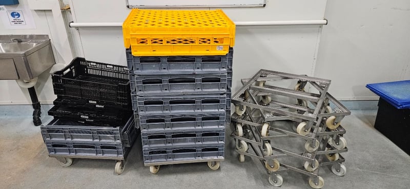 Trays, Assorted Trays with Stainless Steel Dollies Sold as Lot
