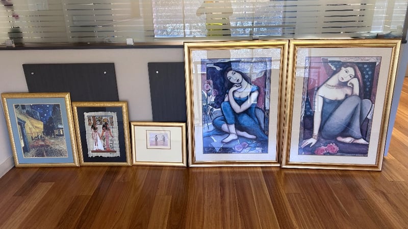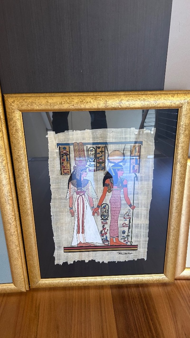 Prints, 5 x Prints Depicting Egyptians ,Stars in the Night Sky, Abstract Seated Women & More.Dimensions: H:115cm x W:90xm x D:10cm.Sold As Lot.