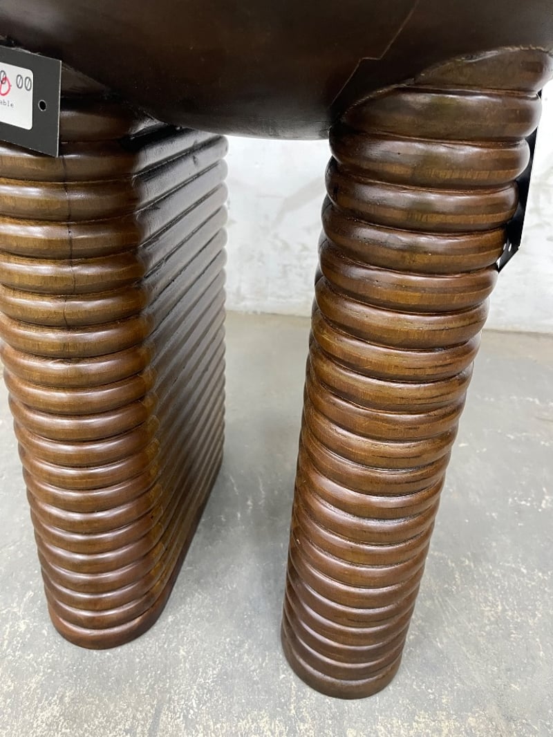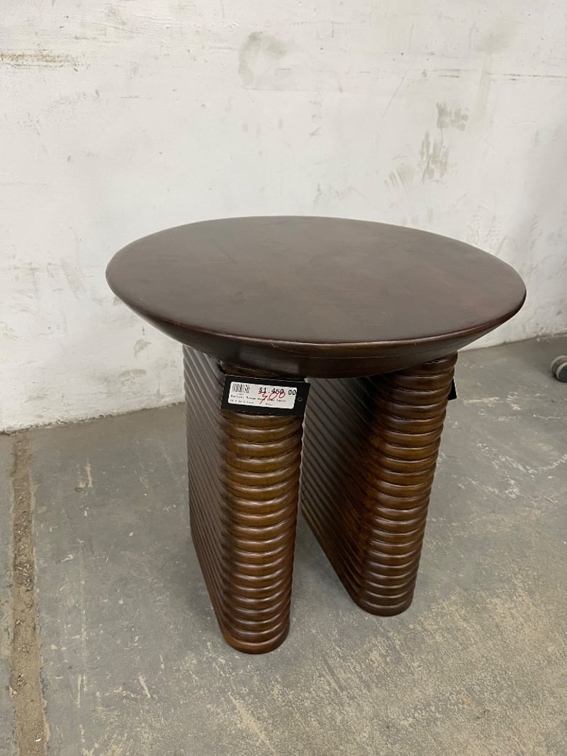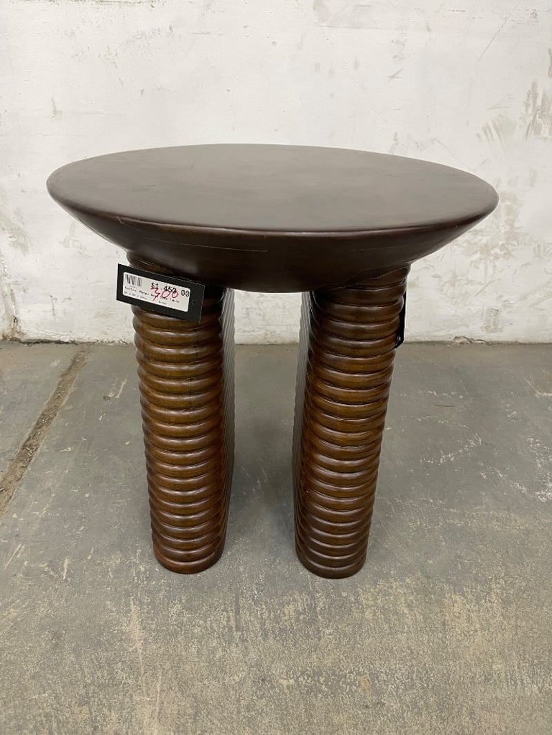 RRP: $1450, Kartini Mango Wood Side table, Ribbed, Dark TimberH: 50cm W: 50cm D: 50cm