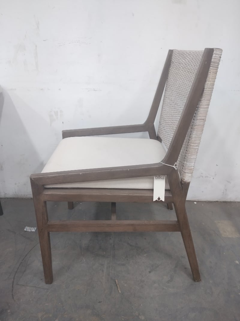 RRP: $695, Paxton rattan chair, cream finish, timber frameDimensions L56 x W63 x H90