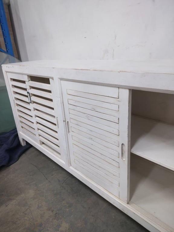RRP: $3260, Henri pine 4 door sideboard, white finish, timber cabinet, sliding doorsDimensions L180cm x W45cm x H90cm