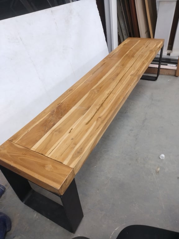 Timber top table, steel frame black finishDimensions L191cm x W41cm x H46cm