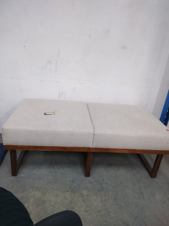 RRP: $3130, Langford bench seat oak finish frame, timber Dimensions L140cm x W70cm x H50cm