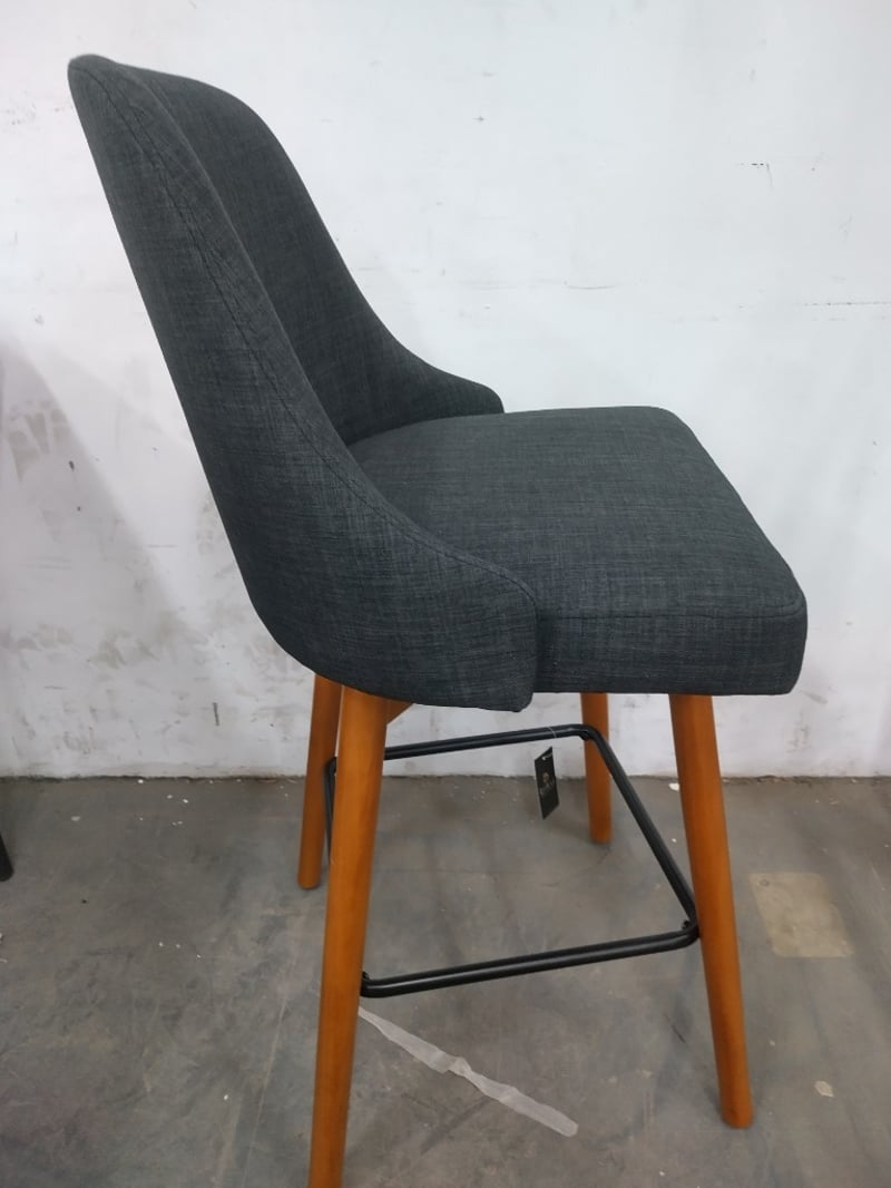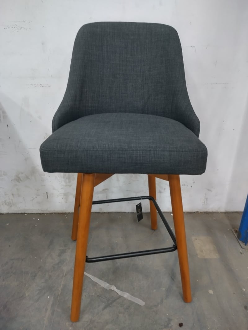 Bar stool, Cushioned, grey finish, timber legs, steel baseDimensions L42 x W49 x H97 cm