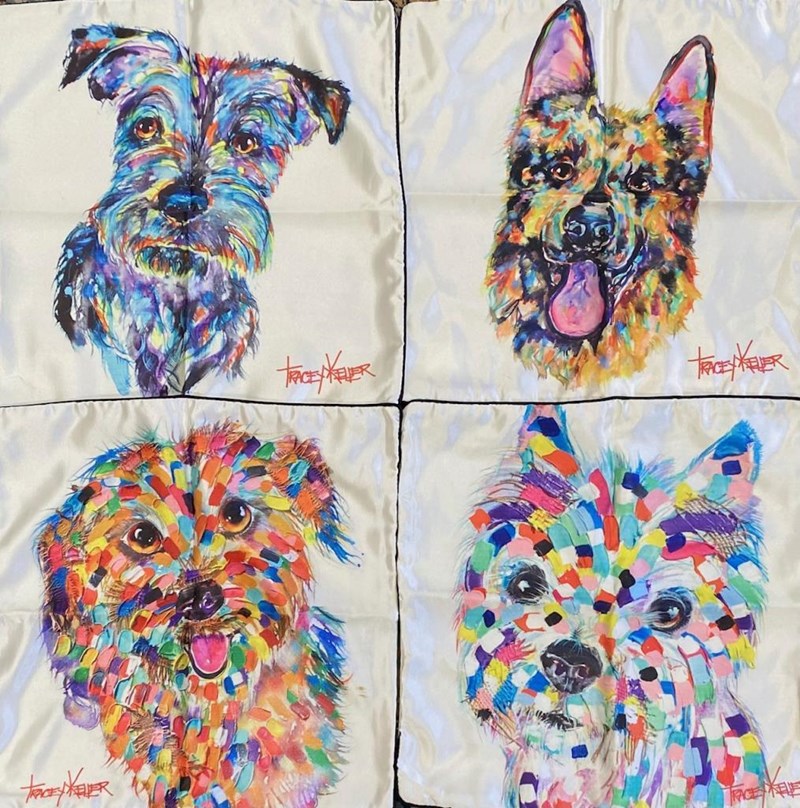 SET OF FOUR CUSHION COVERS (DOGS, SET B) BY TRACEY KELLER Set Of 4 Cushion Covers, Dogs B Four Individual Cushion Covers Size: 44Cm X 44Cm Each Size: 44 x 1 x 44 Condition: Good - Refer To Images 160746+43