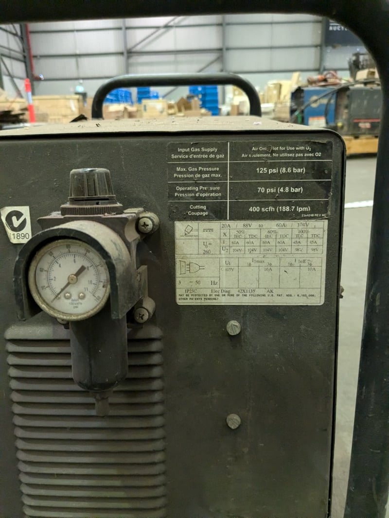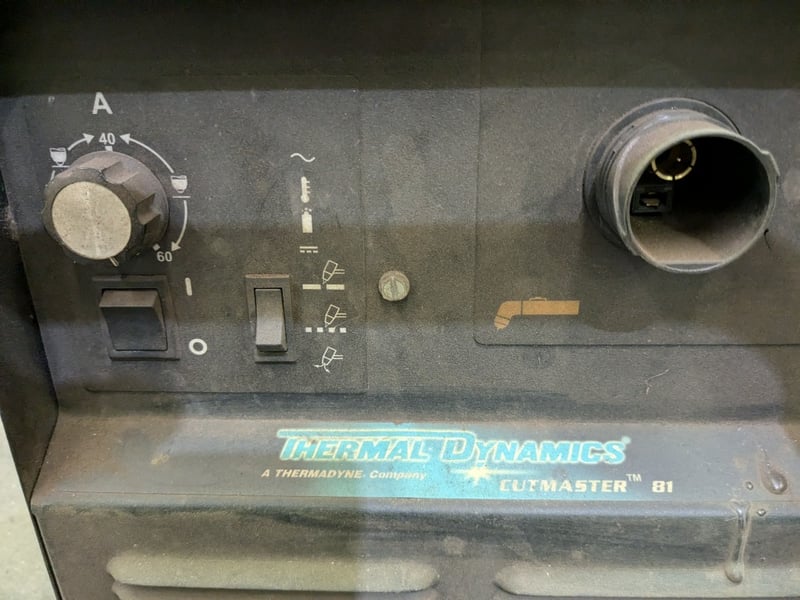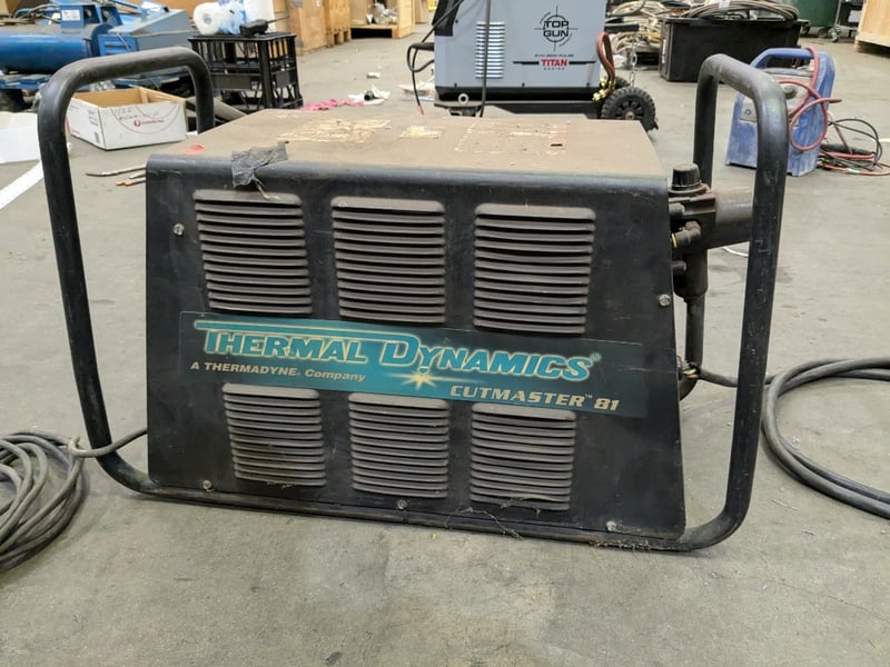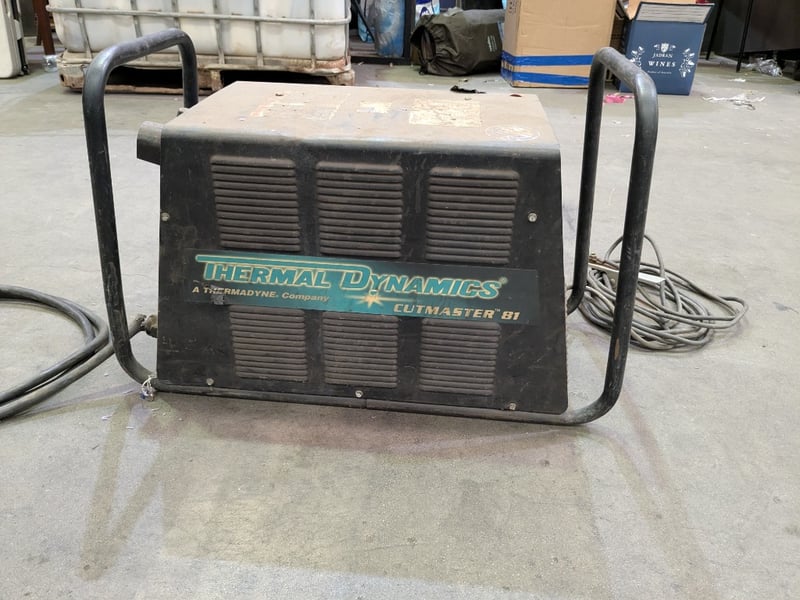 Thermal Dynamics Plasma Cutter, Mod: Cutmaster 81, SN: Ukn, MD: Ukn, 20Amp - 88 Volt / 60Amp - 104 - 3 Phase, Volt, Approximate Dimensions: H 45cm x W 30cm x D 65cm Note: Used Condition with Heavy Wear n Tear Note: Untested