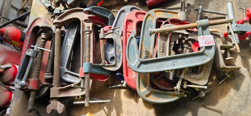 G Clamps, Assorted Various sizes of G Clamps, Sold as lot *** PLEASE NOTE This is a SITE CLOSURE Collections must occur Strictly Thursday 18th Dec 2025 to Tuesday 23rd Dec 2025 - WEEKDAYS ONLY | 9am to 4pm, failure to collect items, shall be discarded / disposed of immediately, refunds will not be accepted *** Ryan Sawade | 0401 644 313 | [email protected]