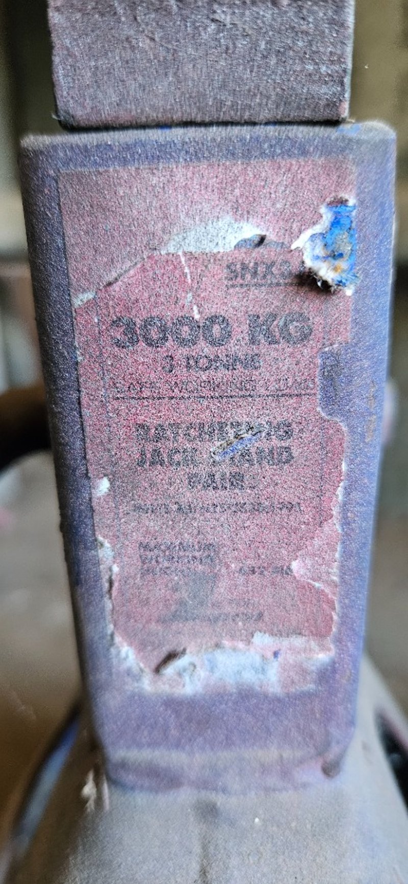 Axle Stands, 4x Axle Stands including 3000kg Rated Sold as lot *** PLEASE NOTE This is a SITE CLOSURE Collections must occur Strictly Thursday 18th Dec 2025 to Tuesday 23rd Dec 2025 - WEEKDAYS ONLY | 9am to 4pm, failure to collect items, shall be discarded / disposed of immediately, refunds will not be accepted *** Ryan Sawade | 0401 644 313 | [email protected]