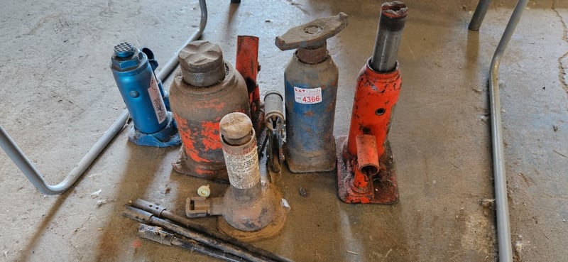 Bottle Jacks, Assorted Bottle Jacks Condition Unknown *** PLEASE NOTE This is a SITE CLOSURE Collections must occur Strictly Thursday 18th Dec 2025 to Tuesday 23rd Dec 2025 - WEEKDAYS ONLY | 9am to 4pm, failure to collect items, shall be discarded / disposed of immediately, refunds will not be accepted *** Ryan Sawade | 0401 644 313 | [email protected]