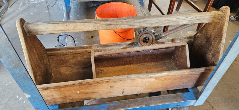 Vintage Tool Carrier, and Die Handle Sold as lot *** PLEASE NOTE This is a SITE CLOSURE Collections must occur Strictly Thursday 18th Dec 2025 to Tuesday 23rd Dec 2025 - WEEKDAYS ONLY | 9am to 4pm, failure to collect items, shall be discarded / disposed of immediately, refunds will not be accepted *** Ryan Sawade | 0401 644 313 | [email protected]