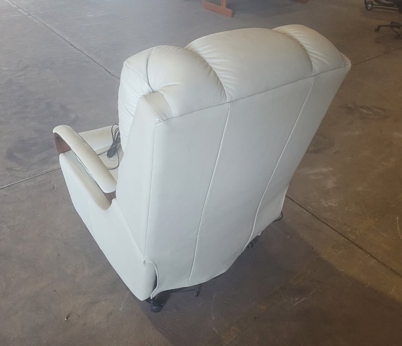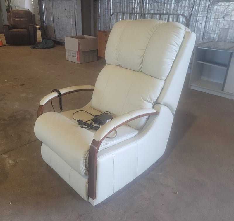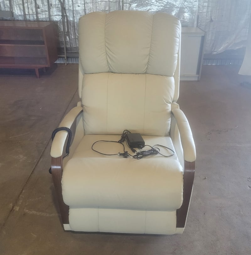 Cream Leather Lazy-Boy. Battery Operated Electric Recliner, Battery Included. Unknown Working Condition.