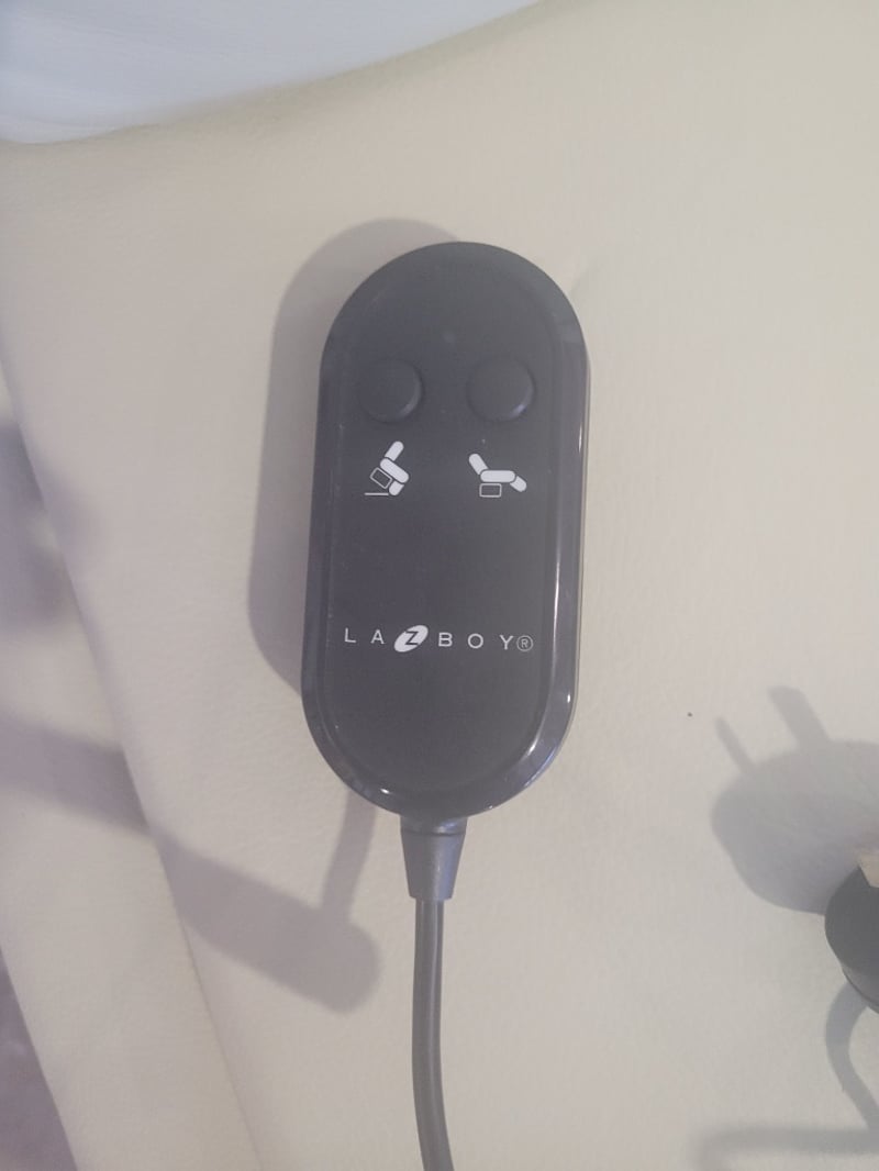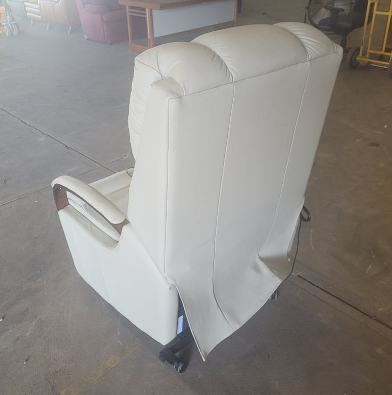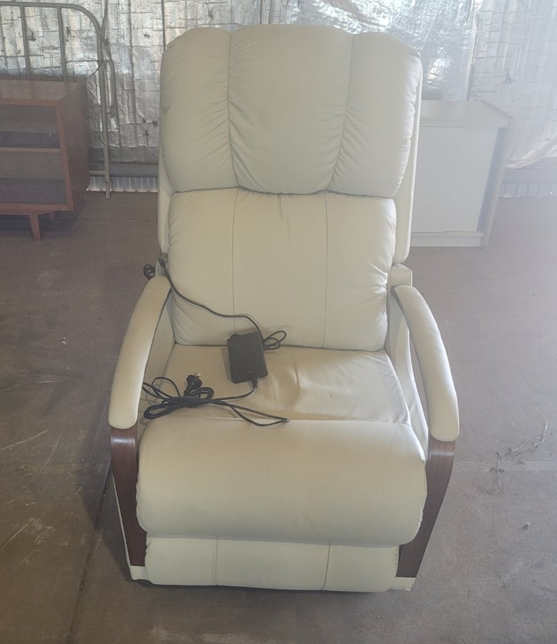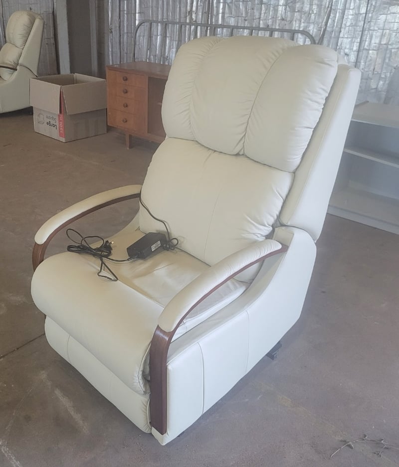 Cream Leather Lazy-Boy. Battery Operated Electric Recliner, Battery Included. Unknown Working Condition. Serial NO. 202407122665.