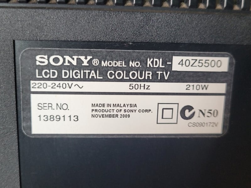 Sony Bravia Television LCD Digital Colour. Serial NO. 1389113.