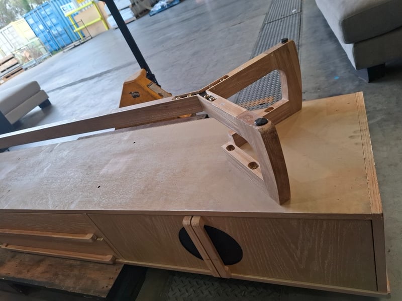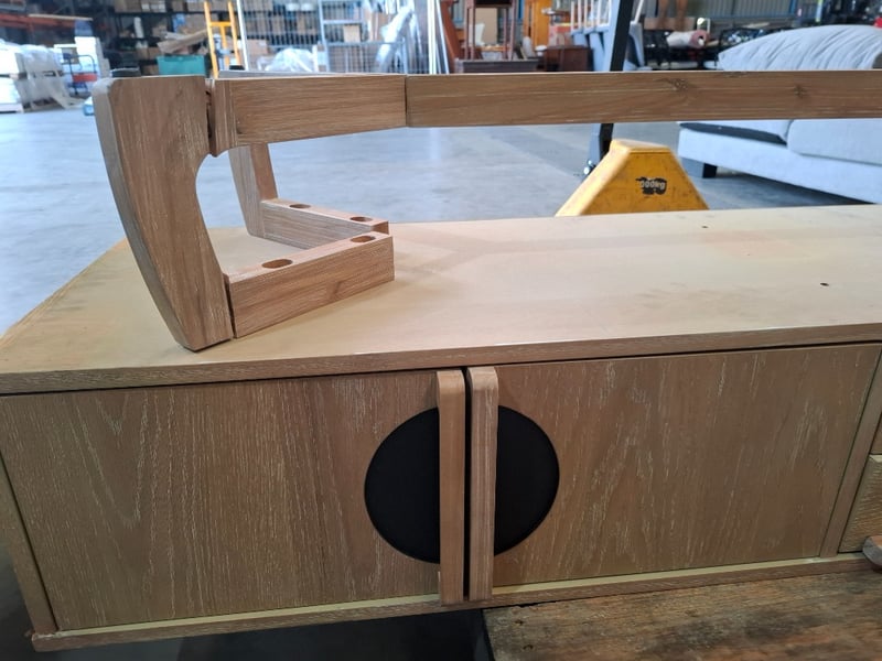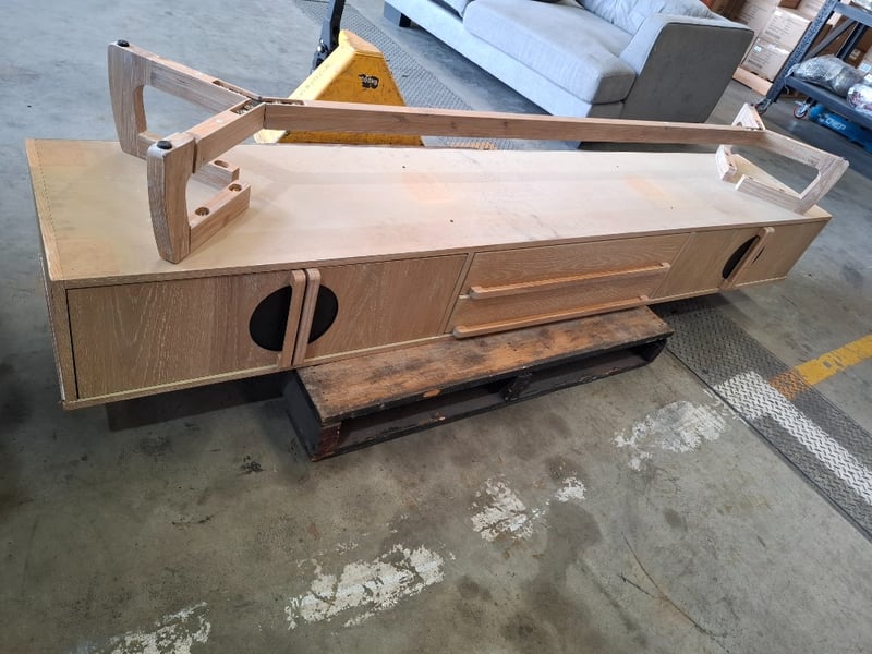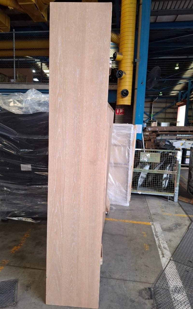 Tv unit, 4 doors, 2 drawers, natural white wash finished Dimensions: 239cm(W) x 45cm (D) x 50cm ( H)Note: leg broken, scuff, marks