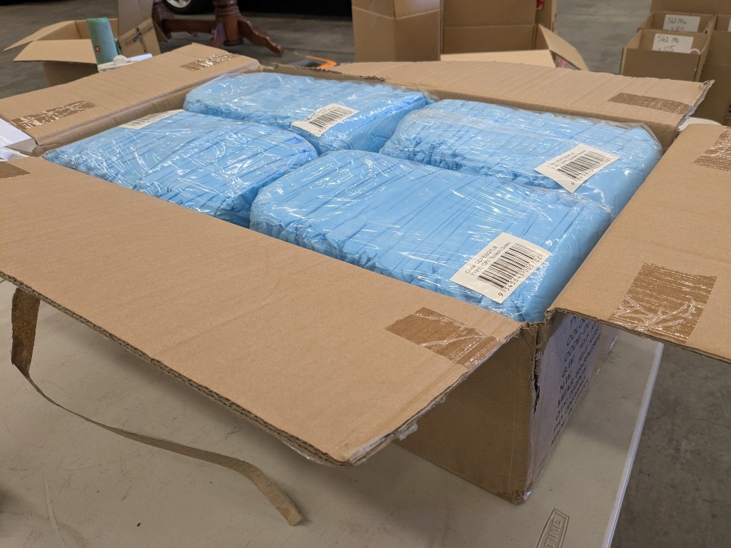 CPE Splash Gowns, Blue. Approx. 200. Sold as Lot.