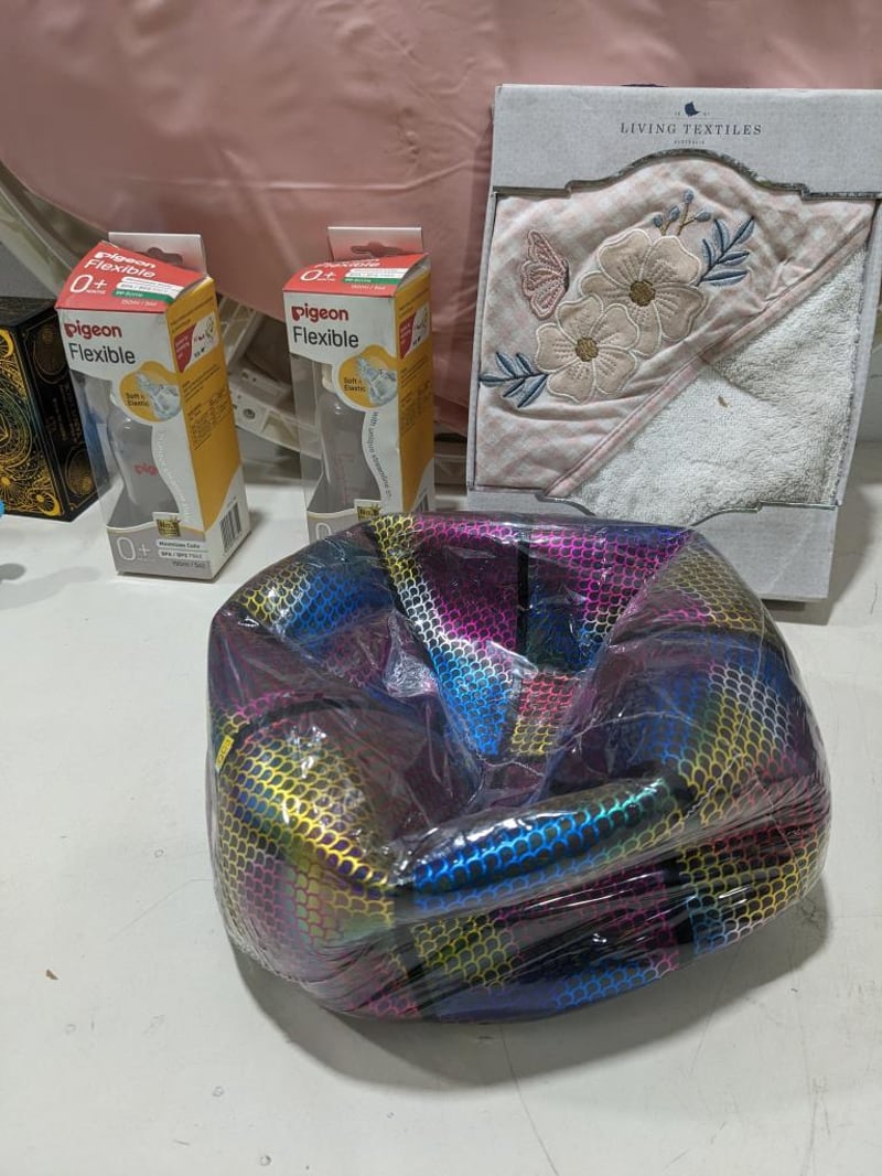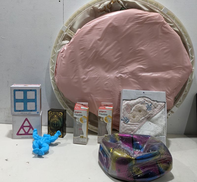 Assorted items includes, kids pool, baby towel and more..NOTE: Signs of wear and tear.Sold as a lot.
