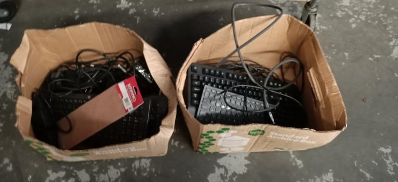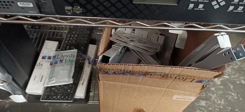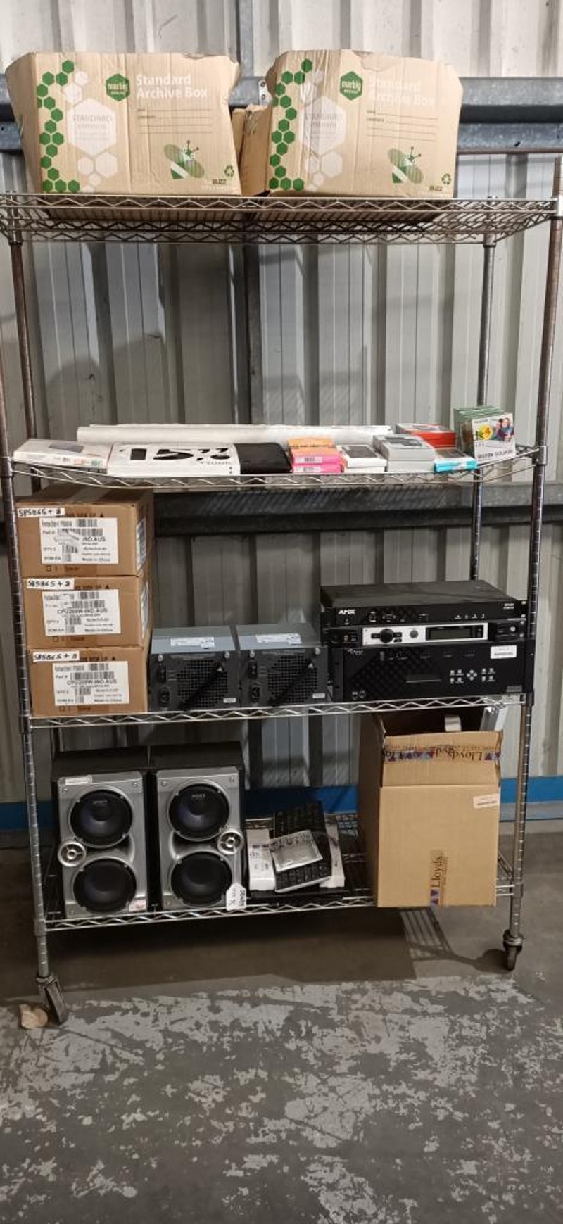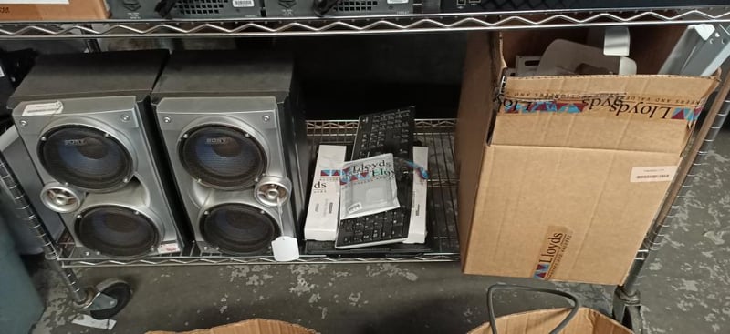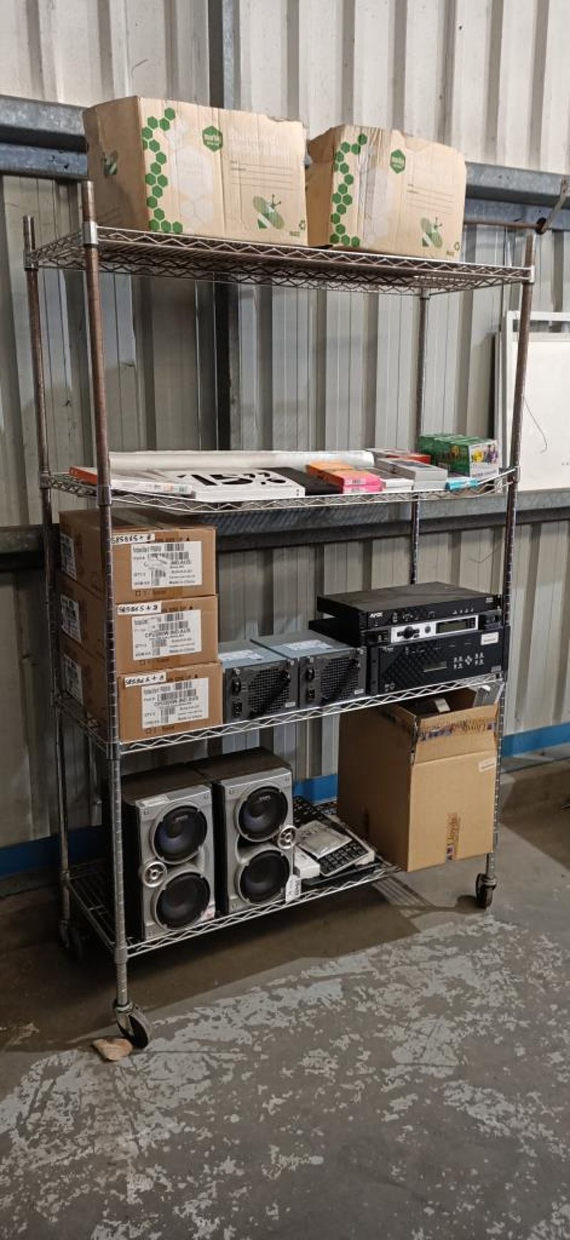 Assorted Tech Items Including Power Supply, Digital Receiver, Keyboards, Speakers, Phone Cases & More SOLD AS LOT NOTE: MUST BE PICKED UP WITHIN 48HOURS OF AUCTION NOTE: CHROME RACK NOT INCLUDED NOTE: PICK UP ONLY