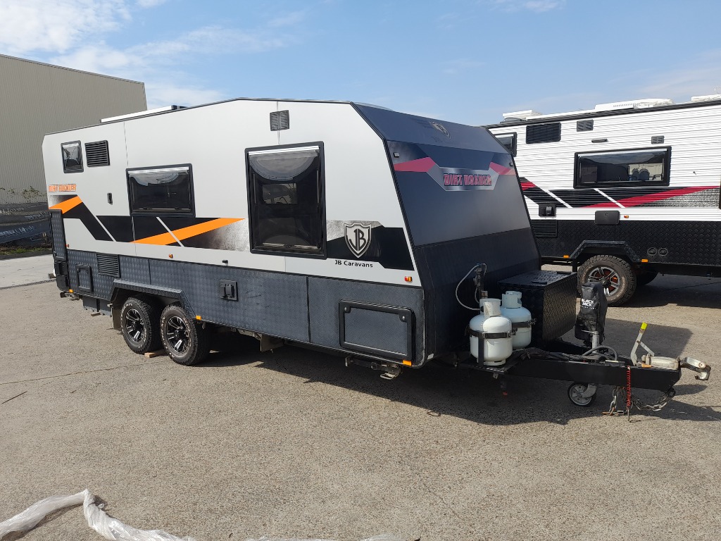 Description/ extras: Queen bed, overhead storage, bedside USB and plugs, fans, TV, air-conditioning, kitchenette with oven and 3 burner stove top, sink, fridge and freezer, microwave, toilet and shower, 3kg washing machine, booth seating and table, storage throughout, external storage, inlet and outlet plug, external fold down table, external shower, spare wheel.