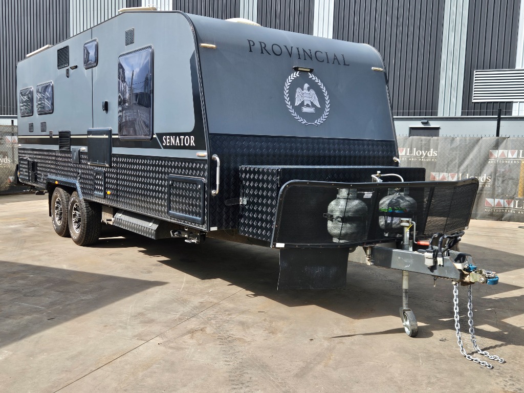 2020 Salute Caravans Provincial Senator Price Guide - $52,000 - $58,000 Year: 2020 Make: Salute Caravans Model: Provincial Senator Body: Caravan Colour: Grey/Black Configuration: Dual Axel Description/ extras: Toilet, indoor and outdoor shower, indoor and outdoor stove and sink, double bed, TV, electrical outlets and USB charging, washing machine, living area VIN: 6T9T21V86LAF0C037 Tare: 2898 kg ATM: 4200 kg SOLD UNREGISTERED Key# B19 Lloyds Stock #990496+1 #MMR