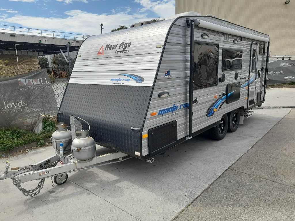 2017 Manta Ray New Age CaravanYear: 2017Make: New Age Model: Manta RayLength: 6.2mColour: GreyConfiguration: Dual axleLength Overall: 7.4mGTM: 2430kgTare: 2140kgATM: 2540kgDescription/ extras: Queen bed, Overhead storage, bedside USB and plugs, fans, TV, air-conditioning, kitchenette with grill and 3 burner stove top, sink, fridge and freezer, microwave, toilet and shower, 3kg washing machine, booth seating and table, storage throughout, external storage, inlet and outlet plugs and speakers, external fold down table, spare wheelVIN: 6KZNEWAGEHC001124Key# E5Lloyd's stock #584112+1#MMR