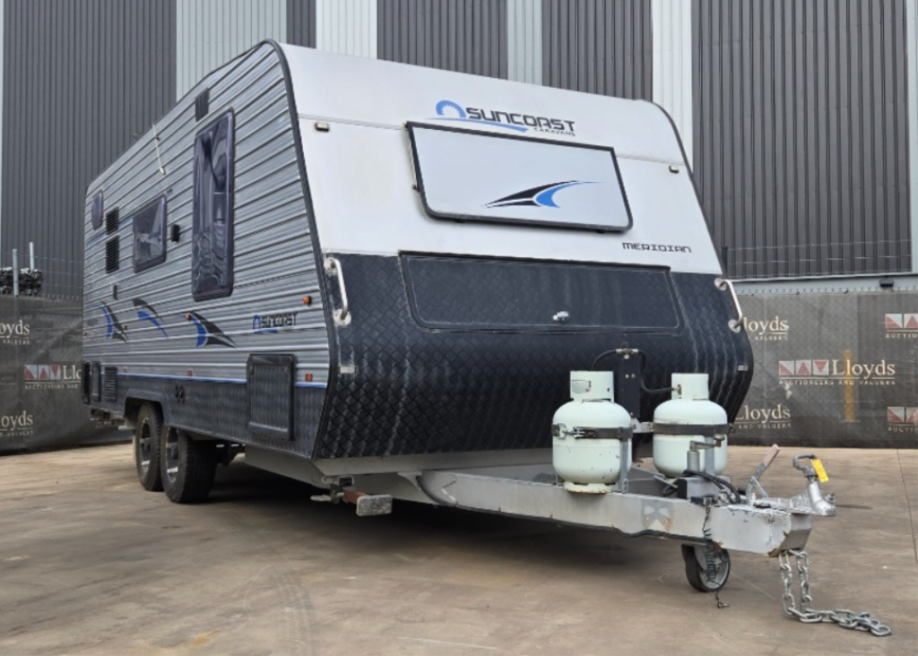 2016 Suncoast Caravans Meridian Year: 2016 Make: Suncoast Caravans Model: Meridian Body: Caravan Colour: Black/Silver Configuration: Dual Axel Description/ extras: Double bed, stove, cupboards, TV, fridge suspension: Leaf Tare: 2340 kg ATM: 2900 kg GTM: 2760 kg VIN: 6T9T21V86009TY004 Chassis Number: SC16252 Key# B27