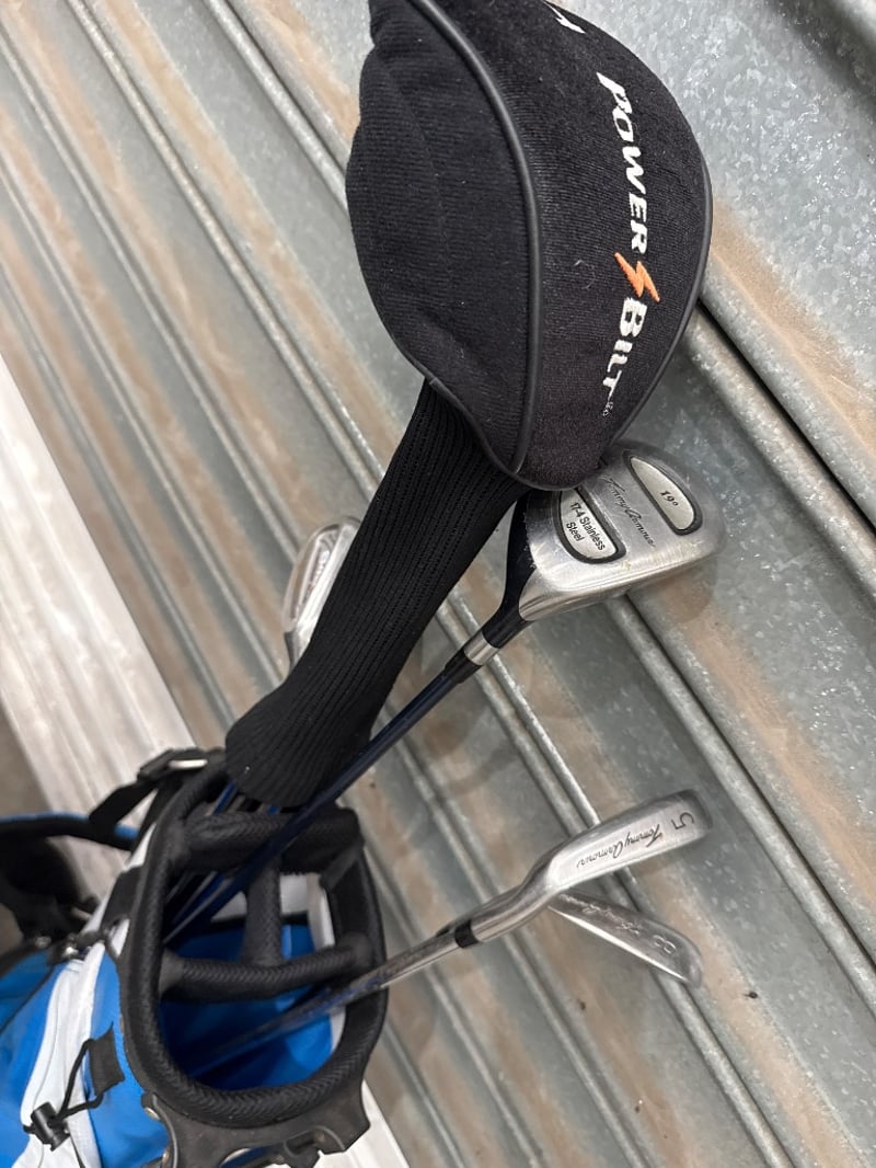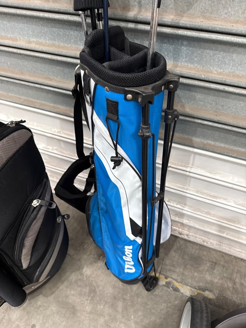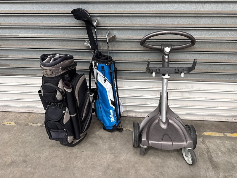 Golf accessories, Brands are Wilson, Eagles Birdies and Stokke, items include Golg Clubs, Golf bags and Golf trolly.