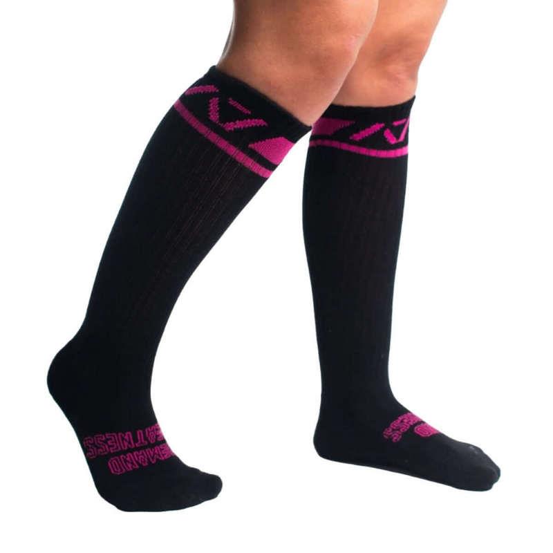 A7 High Knee Socks, Black and Pink. Size SQTY2
