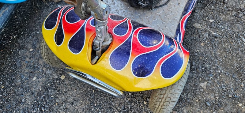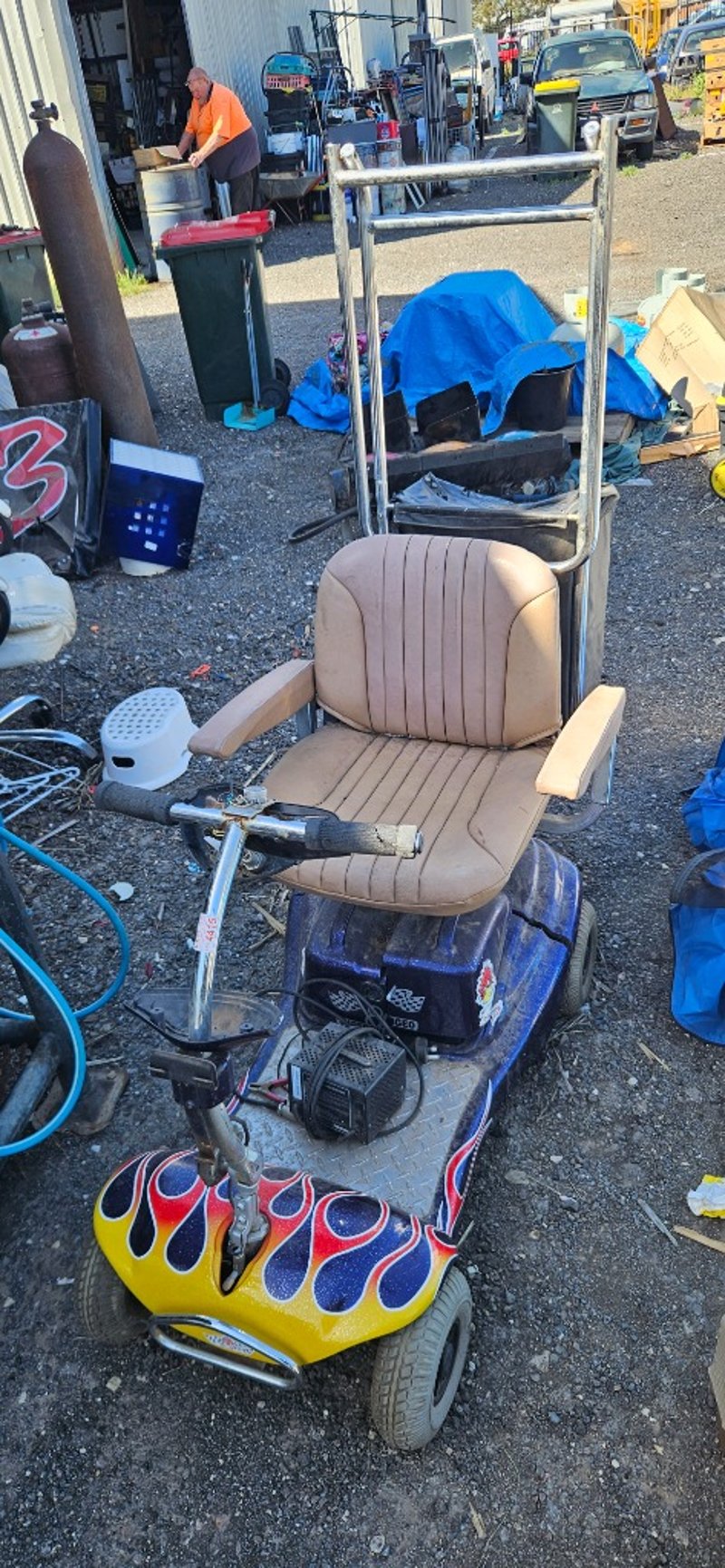 Mobility Scooter, Mobility Scooter With Custom Paint Note: Batteries required, Controls Broken *** PLEASE NOTE This is a SITE CLOSURE Collections must occur Strictly Thursday 18th Dec 2025 to Tuesday 23rd Dec 2025 - WEEKDAYS ONLY | 9am to 4pm, failure to collect items, shall be discarded / disposed of immediately, refunds will not be accepted *** Ryan Sawade | 0401 644 313 | [email protected]