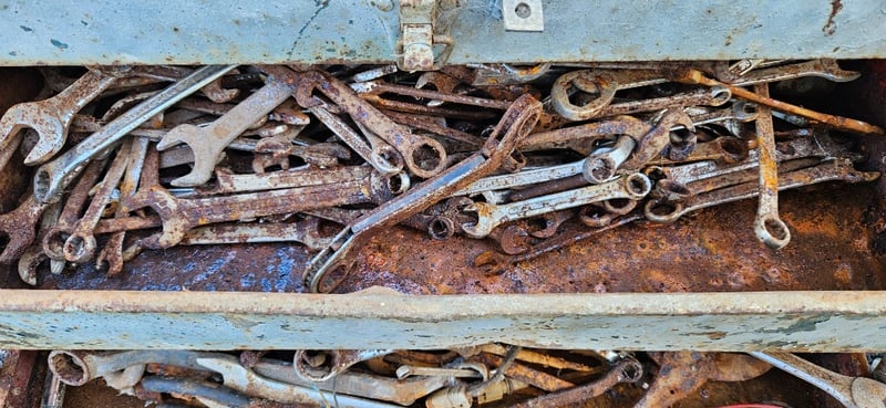 Toolkit, Rusty toolkit with tools, Including rusty spanners and more Sold as lot *** PLEASE NOTE This is a SITE CLOSURE Collections must occur Strictly Thursday 18th Dec 2025 to Tuesday 23rd Dec 2025 - WEEKDAYS ONLY | 9am to 4pm, failure to collect items, shall be discarded / disposed of immediately, refunds will not be accepted *** Ryan Sawade | 0401 644 313 | [email protected]