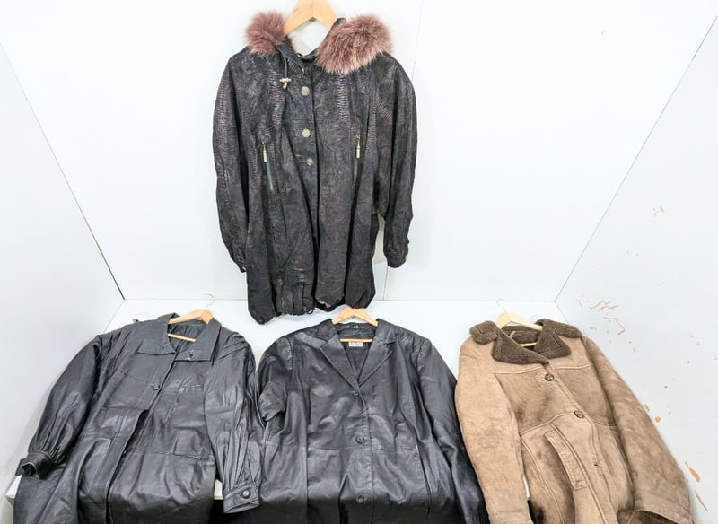 RRP: $600+ , Leather Jackets & Coats, assorted styles/ colours/ brands, Size: Included L-XXLQuantity: 4 Sold as lot