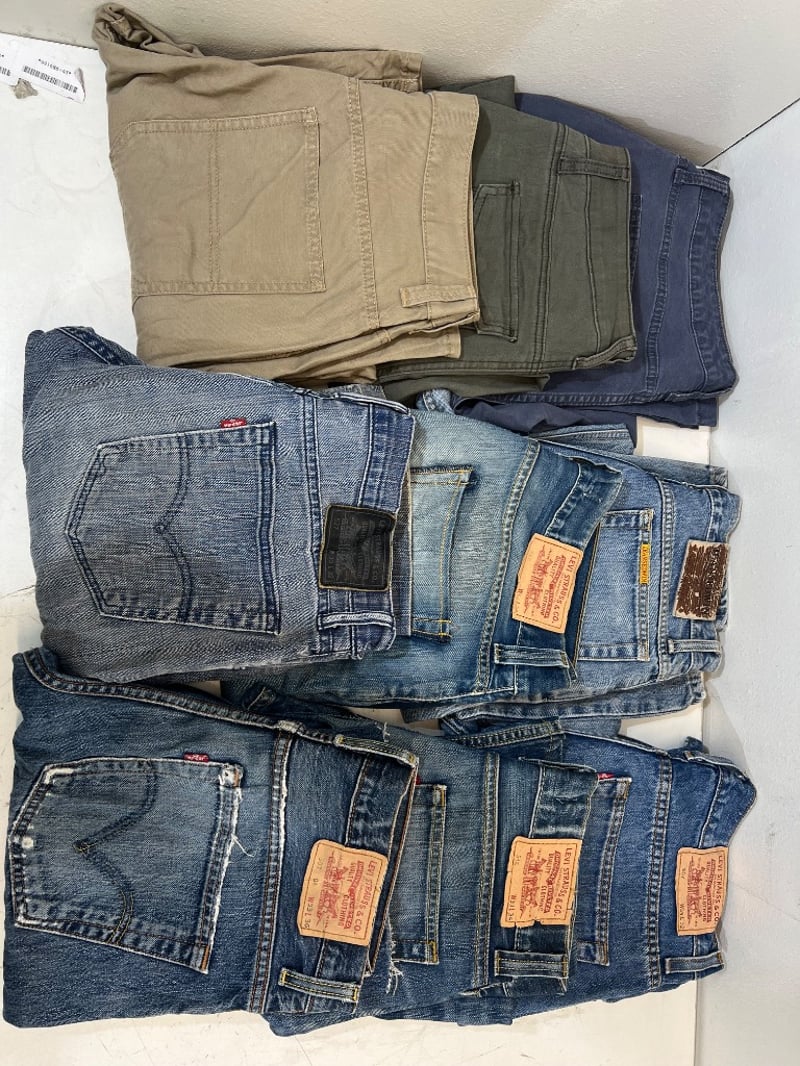 RRP: $600+, jeans/ pants, assorted styles/ colours/ brands, sizes include; 33 Quantity; 9 sold as lot