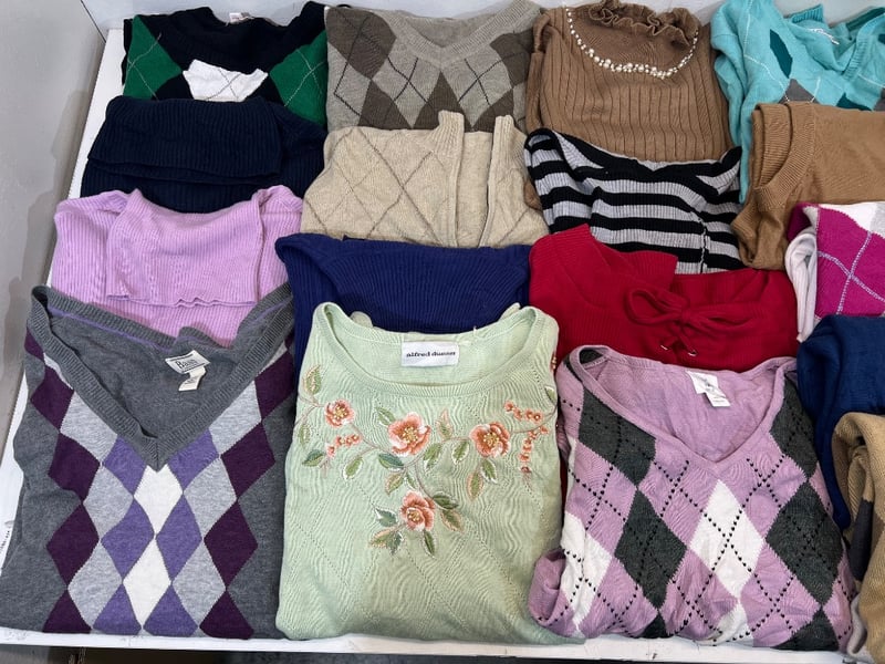 RRP: $600+, sweaters/ tops, assorted styles/ colours/ brands, sizes include; M, L, XXLQuantity; 27 sold as lot