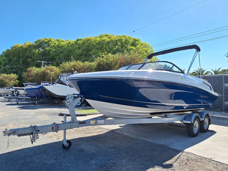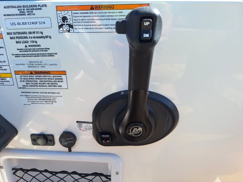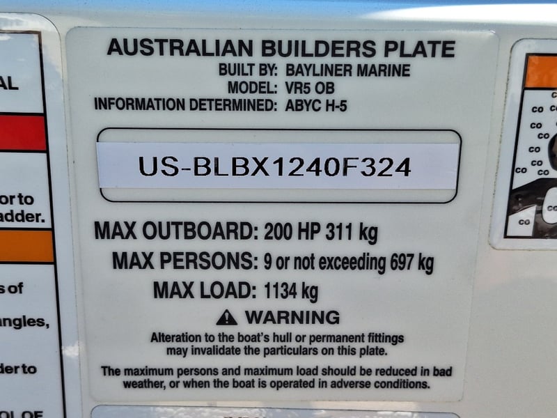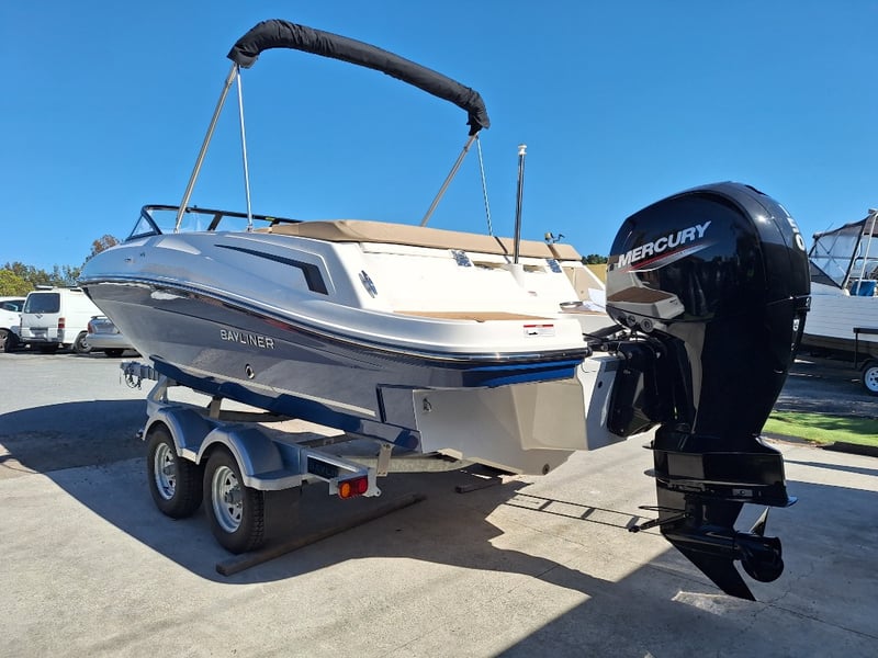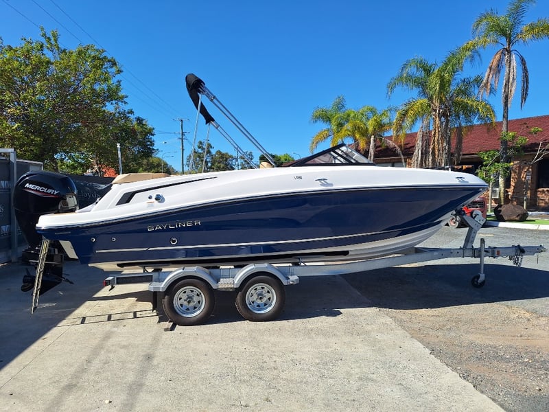 **BRAND NEW 2024 Bayliner VR5 OB Bowrider on a Trailer RRP: $140,000 Year: 2024 Make: Bayliner Model: VR5 OB Body: Bowrider Hull Material: Fibreglass Capacity: 9 Colour: Blue Engine: Mercury Engine Model: 150HP 4 Stroke Outboard (MERCURY WARRANTY AVAILABLE TO SUCCESSFUL BUYER) Engine no: 3B469916 Engine Model: 1150F23ED Engine Hours Indicating: 0.0 Description: Console Switch Panel, Console Gauges, Tow Pole, Bimini, Bimini Cover, Radio, Step Ladder, USB Ports, Multiple Storage Areas, Isolator Switch, Accent Lights, Nav Lights, Bilge Pump, Cockpit Light, Anchor Switch, Horn Switch Total length on trailer: 7.5m Trailer width: 2.49m HIN: US-BLBX1240F324 Vessel length: 6.23m ON A TRAILER: Year: 2023 Make: Karavan Trailers Model: USTM 4500 Body: Boat Trailer Colour: Silver Material: Aluminium Configuration: Double Axle Suspension: Leaf Spring Description: Jockey Wheel, 7 Pin Connector, 50mm Tow ball Connector Chassis No.: 5KTB52124RX310018 ATM: 2469kg Tare: 428kg Total length: 7.5m Key# MMR66 Carrara