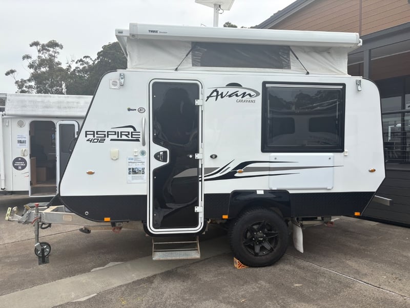 **2024 Avan Aspire 402 Pop Top Year: 2024 Make: Avan Campers Model: 402 Aspire P/T A/P Body: Pop Top Length: 3.9m, 5.4m from tow ball to rear, 2.4m H Colour: White Configuration: Single Axel VIN: 6H3AVAN04RM000016 ATM: 1600kg Tare: 1255kg GTM: 1430kg Description/ extras: The 2024 Avan Aspire 402 Pop Top is a lightweight and cleverly designed touring van, perfect for those looking for a compact setup without sacrificing comfort or functionality. Featuring a single axle and a practical rear single-bed layout, this van is ideal for solo travellers or couples seeking simplicity and ease of use on the road. The front kitchen is well-equipped and efficiently laid out, while generous under-bed storage and a spacious front boot ensure there's room for all your essentials. Air conditioning provides year-round comfort, and a handy display panel lets you easily monitor battery and water tank levels to stay in control of your setup at all times. With an ATM of just 1,600kg, the Aspire 402 is suited to a wide range of popular towing vehicles, making it a fantastic option for those new to caravanning or looking for a stress-free tow #MMR