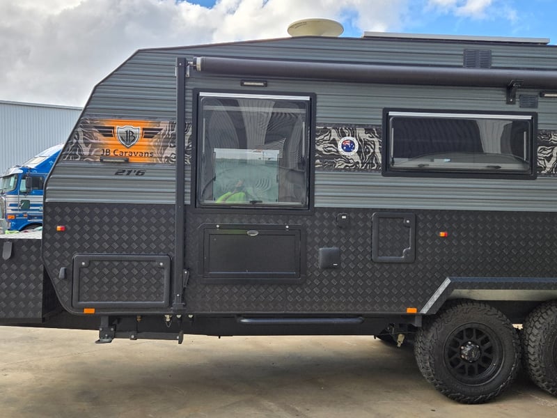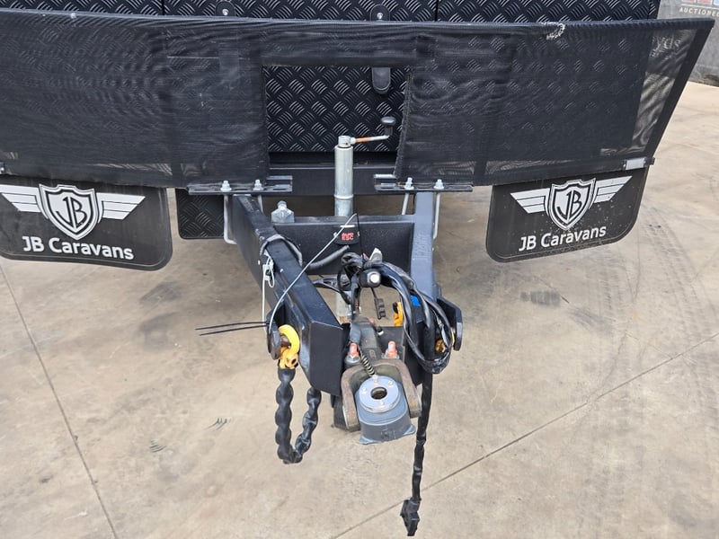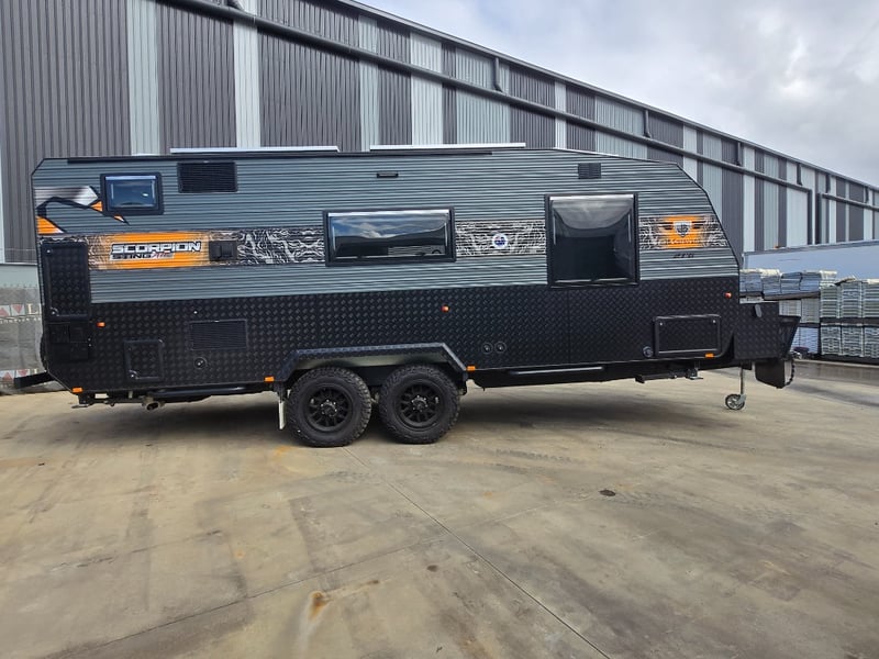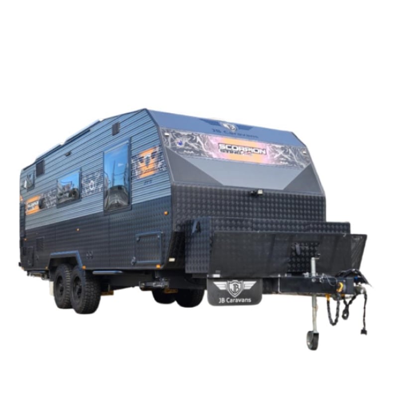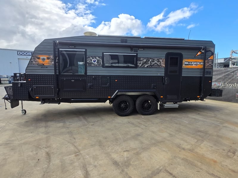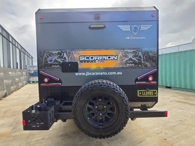 **2023 JB Caravans Scorpion Sting Air Year: 2023 Make: JB Caravans Model: Scorpion Sting Air Body: Caravan Colour: Black/Grey/Orange Configuration: Dual Axel Tare: 3059 kg ATM: 4500 kg Description/ extras: stove, sink, double Bed, inside toilet, inside shower, wash machine, and more. VIN: 6P45AFOR2PC000198 Key# B40 Lloyds stock #990553+1 #Ajax #MMR