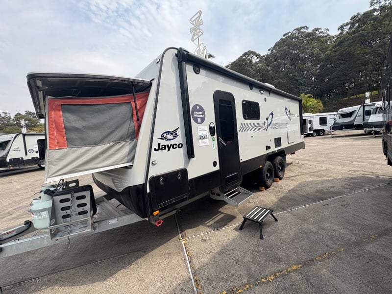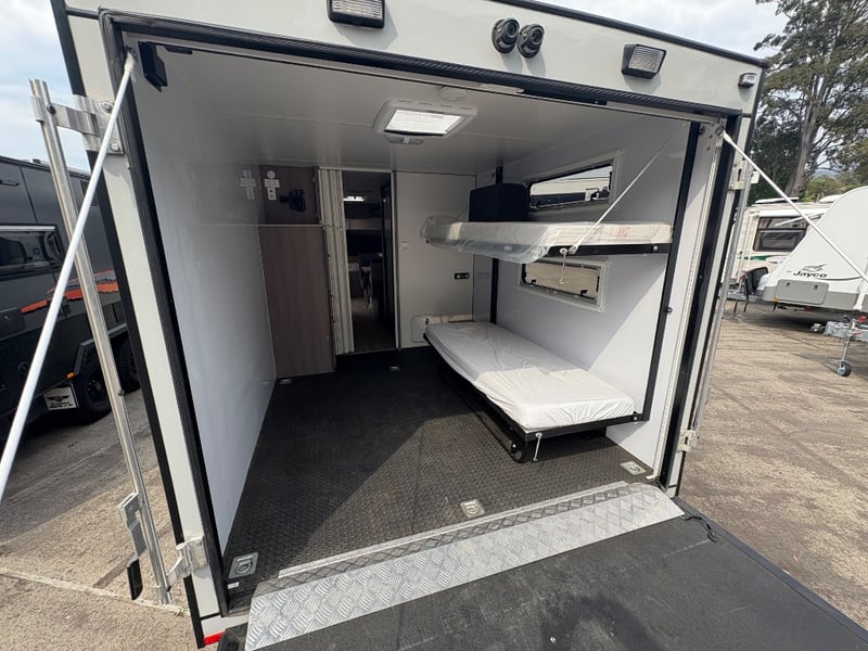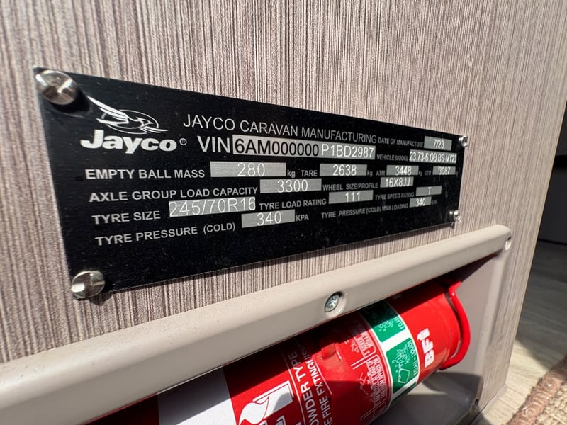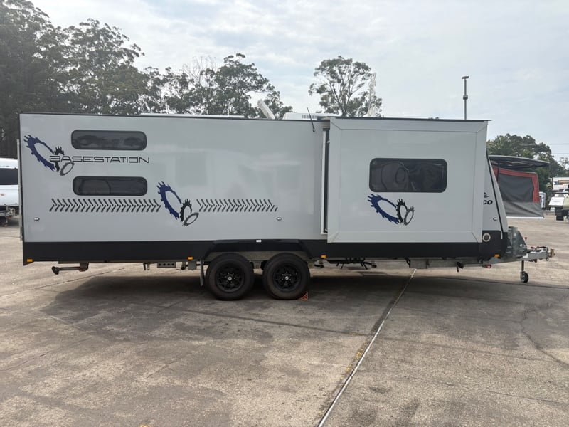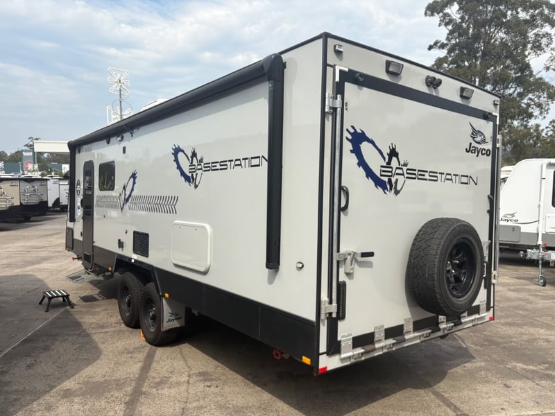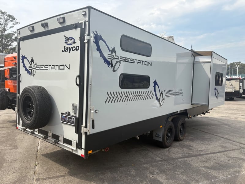 **2023 Jayco Base Station 23.73-6 Year: 2023 Make: Jayco Model: 23.73-6.OB-MY23 Body: Caravan Length: 7.2m, 9m form tow ball to rear, 2.75H Colour: Grey Configuration: Caravan VIN: 6AM000000P1BD2987 AGLC: 3300KG Tare: 2638KG GTM: 3448KG Description/ extras: 2023 Jayco Base Station 23.73-6 hit the road without having to leave the toys behind with the Jayco Basestation. With a 2638kg tare and 3448kg ATM you'll have more than enough payload to be able to take the bikes, kayaks, quads, whatever toy you have. Features include a front fold out double bed, 2 rear bunks, combo ensuite, full kitchen with 4 burner cooktop and gas oven, 216L compressor fridge, leather upholstered slide out club lounge, 2 x 200W solar panels, 2 x 240ah Lithium batteries, 3000W inverter, reverse cycle A/C, diesel heater, 3 x 95L fresh water tanks, 3.3kg washing machine, and a 12v awning