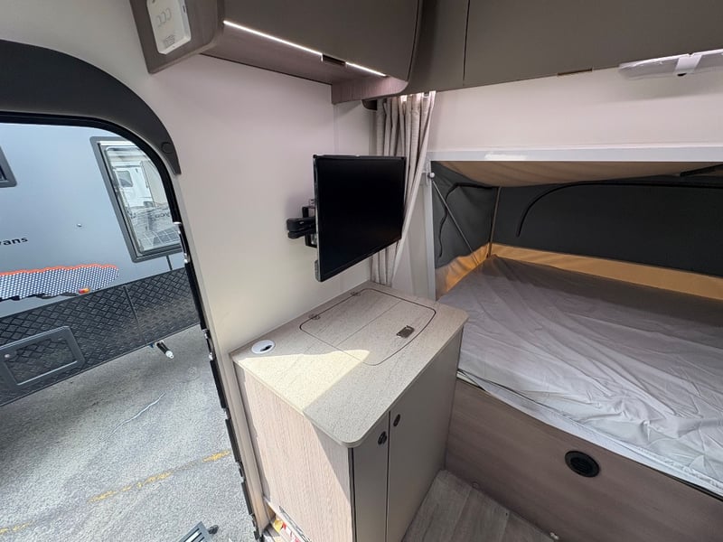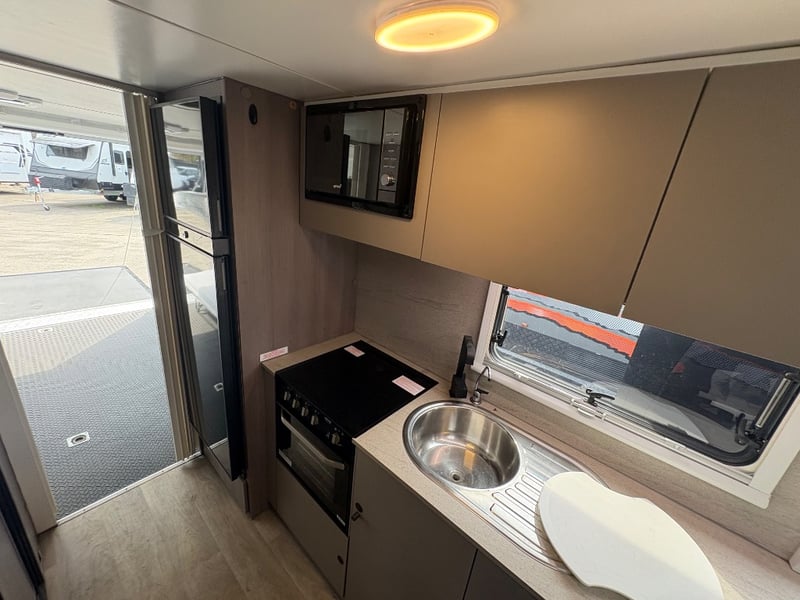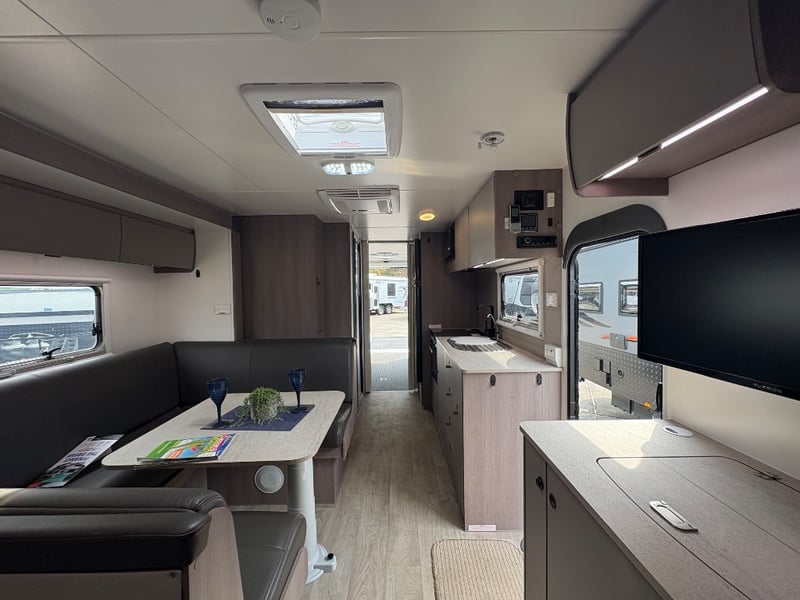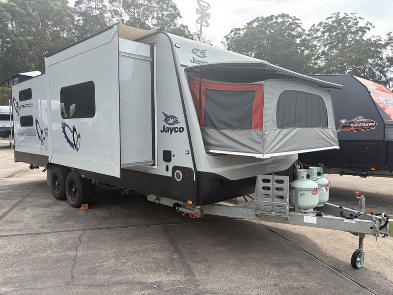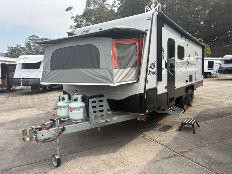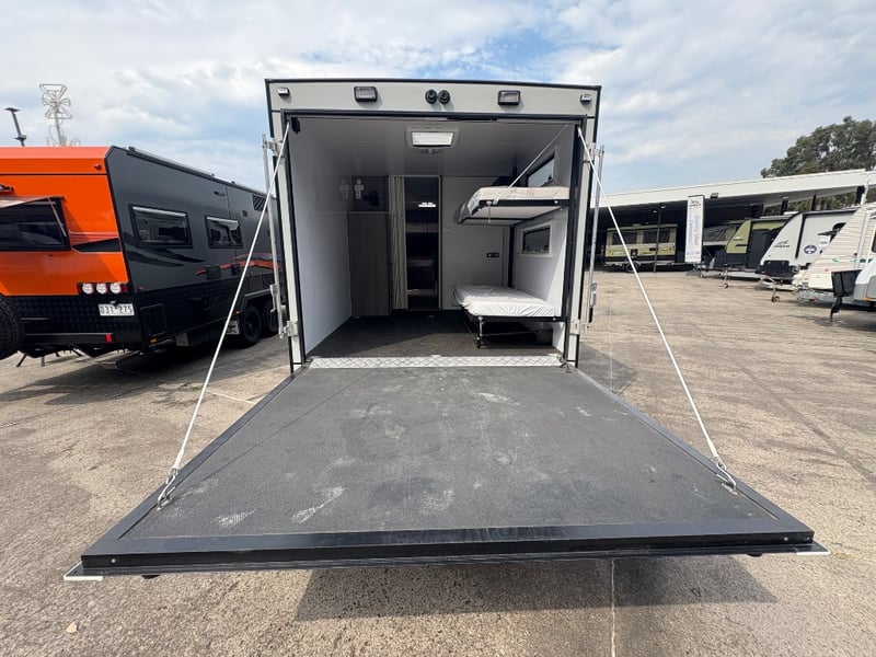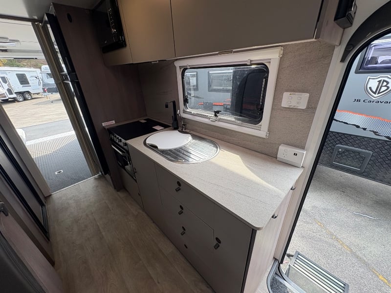 **2023 Jayco Base Station 23.73-6 Year: 2023 Make: Jayco Model: 23.73-6.OB-MY23 Body: Caravan Length: 7.2m, 9m form tow ball to rear, 2.75H Colour: Grey Configuration: Caravan VIN: 6AM000000P1BD2987 AGLC: 3300KG Tare: 2638KG GTM: 3448KG Description/ extras: 2023 Jayco Base Station 23.73-6 hit the road without having to leave the toys behind with the Jayco Basestation. With a 2638kg tare and 3448kg ATM you'll have more than enough payload to be able to take the bikes, kayaks, quads, whatever toy you have. Features include a front fold out double bed, 2 rear bunks, combo ensuite, full kitchen with 4 burner cooktop and gas oven, 216L compressor fridge, leather upholstered slide out club lounge, 2 x 200W solar panels, 2 x 240ah Lithium batteries, 3000W inverter, reverse cycle A/C, diesel heater, 3 x 95L fresh water tanks, 3.3kg washing machine, and a 12v awning