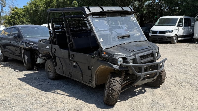 2017 Kawasaki Mule Pro-FXT LE Year: 2017 Make: Kawasaki Model: Pro-FXT LE Body: 4x4 Off Road Mule Drive Type: 4x4 Odometer: Indicating 11747 Engine: 850cc Petrol Engine Transmission: Automatic (High-Low shift pattern) Colour: Black Seats: 5 Description/extras: Rust Evident, Front Right Alignment broken needs repairing key# M67 Carrara key# M65 Carrara Please be advised that, in accordance with Schedule 11 of the Biosecurity Regulation 2016, all machinery, equipment, and vehicles must be thoroughly cleaned of soil, organic matter, and other potential contaminants prior to leaving this site. This is a critical measure to prevent the potential spread of fire ants and to ensure compliance with biosecurity obligations. We appreciate your cooperation in helping to protect our environment and agricultural industries