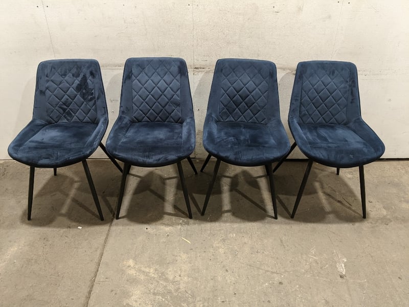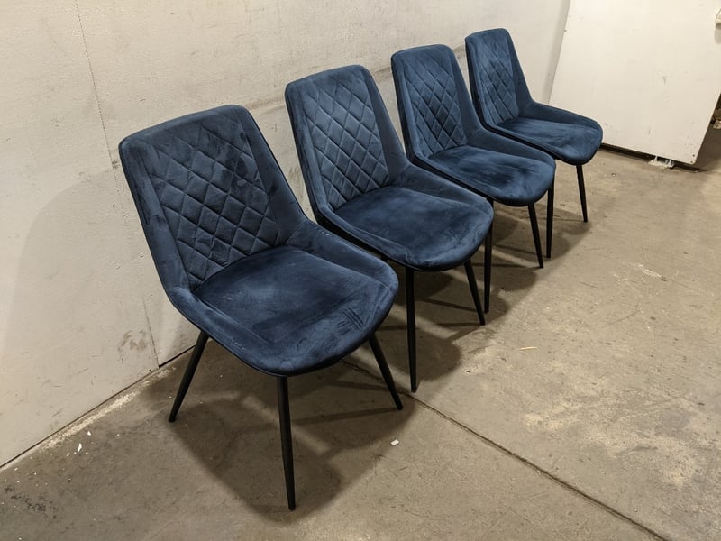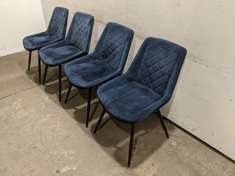 Dining Chairs - Reyna MK2, navy fabric, black steel tubular base frame, Qty x4