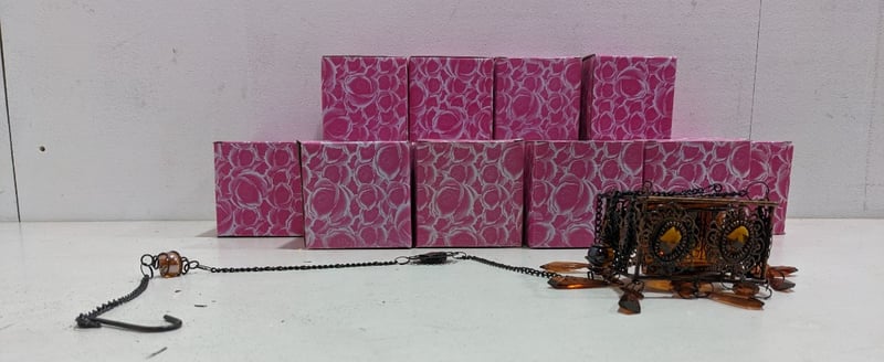 Assorted hanging glass candle holders.Sold as a lot.Note: Various colors.