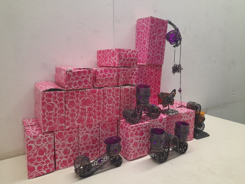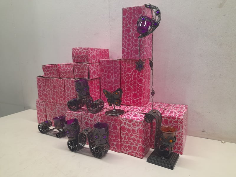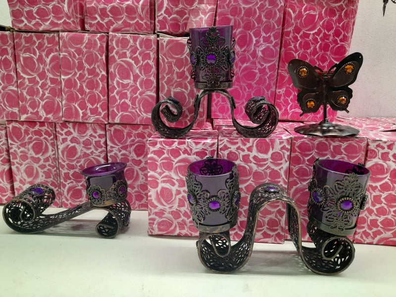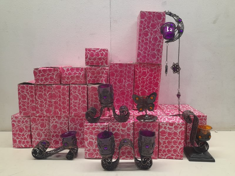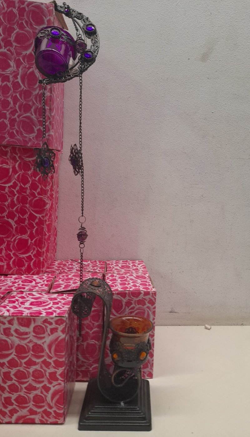 Assorted Decorative Candlesticks, Tinted Glass, Metal FramesSold as lot