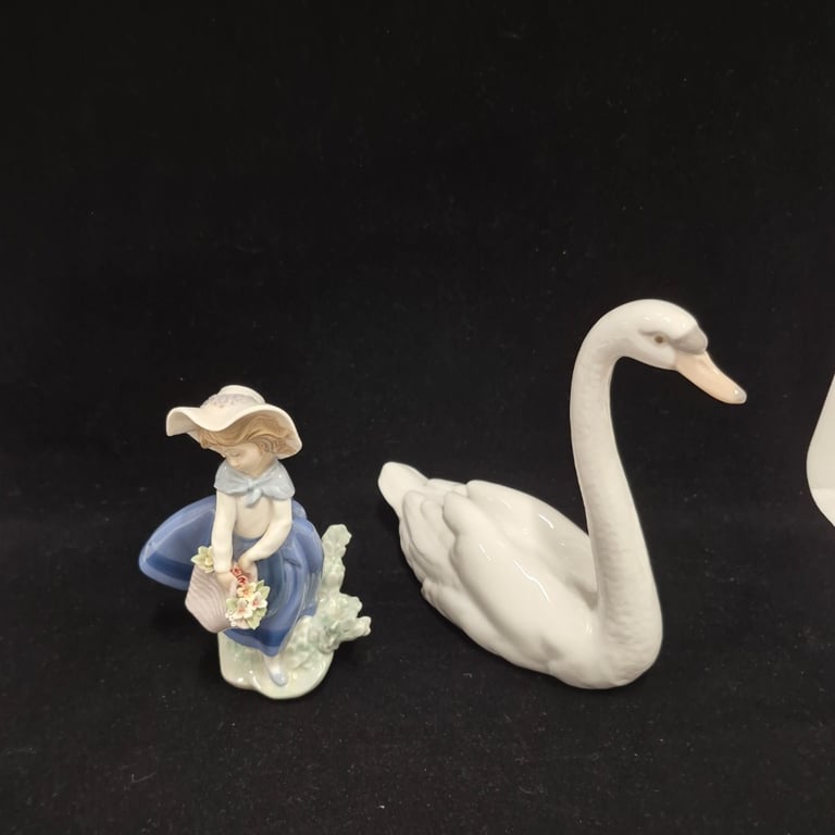 LLADRO PRETTY GIRL PORCELAIN FIGURINE & GRACEFUL SWAN Condition: Good - Refer To Images LOCATED RACK 11B 586106+4