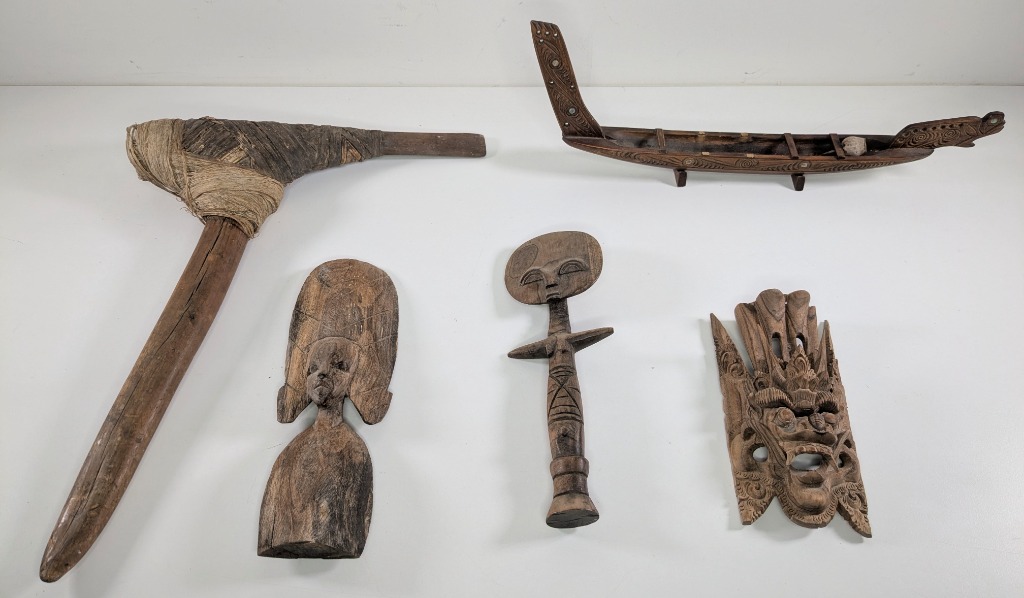Wooden Axe, Wooden Female Figure, Wooden Doll/ Figurine, Indigenous Wooden Mask, Small Wooden Boat