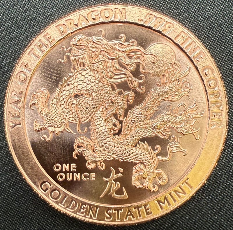 ONE OZ .999 FINE COPPER YEAR OF THE DRAGON GOLDEN STATE MINT COINCondition: Aunc584892+35