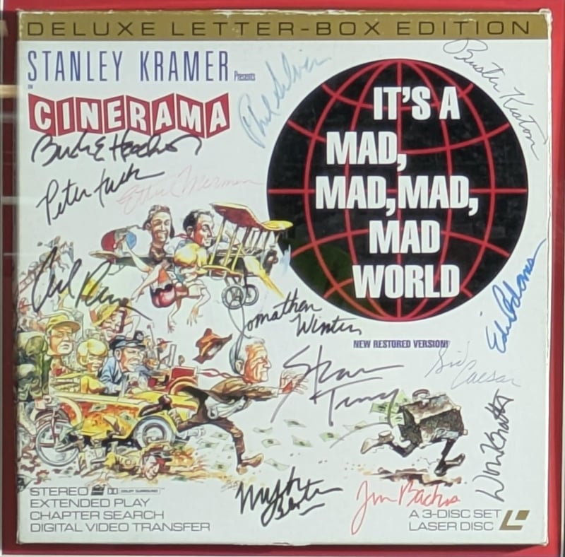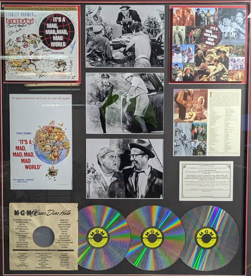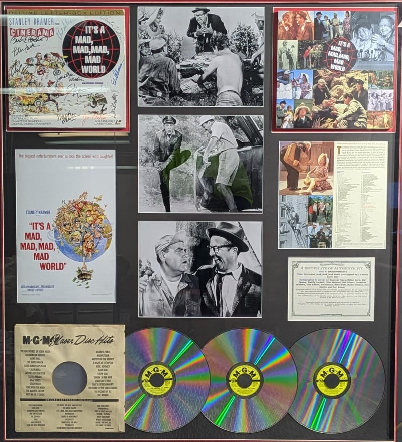 FRAMED 1963 COMEDY FILM IT'S A MAD, MAD, MAD, WORLD CAST SIGNED BY 13 MOVIE LASER DISC
