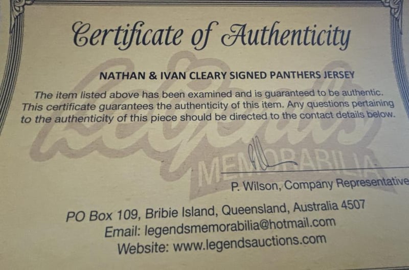 Nathan And Ivan Cleary Signed (Ivan Has Signed Twice) Penrith Panthers Jersey. The Jersey Is Size L. The Item Is Accompanied By A Certificate Of Authenticity.