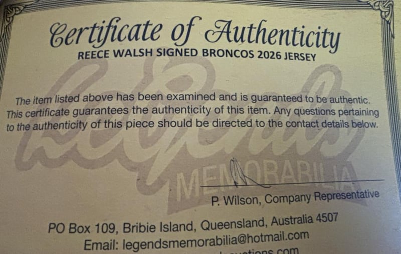 Reece Walsh Personally Signed Brisbane Broncos Jersey. The Jersey Is Size 3Xl. The Item Is Accompanied By A Certificate Of Authenticity.