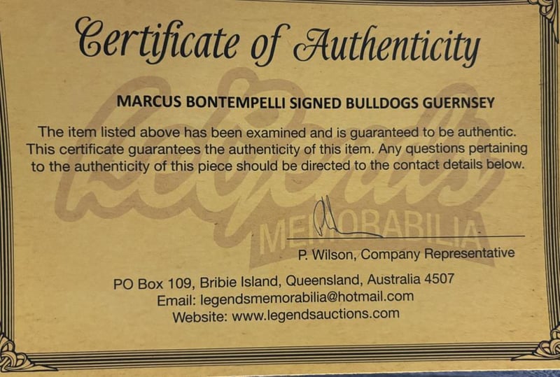 Marcus Bontempelli Personally Signed Western Bulldogs Guernsey. The Guernsey Is Size L. The Item Is Accompanied By A Certificate Of Authenticity.