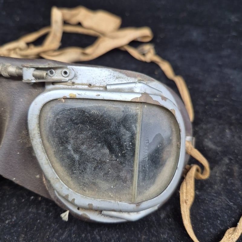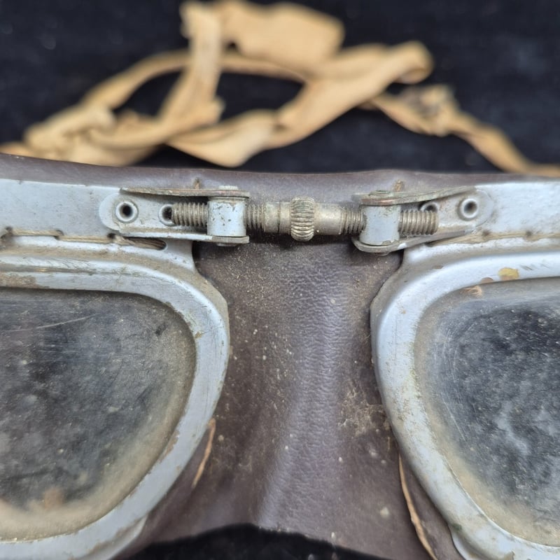 WW1 PILOTS GOGGLES Early-To-Mid 20Th Century Pilot'S Goggles Featuring Tan Leather Eye Cups And Adjustable Strap Mechanism. Condition: Good - Refer To Images 587928+29