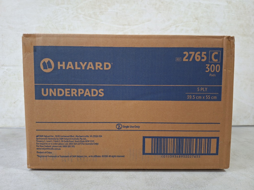 Halyard, Underpads, 300 Pads, 5Ply, 39.5cm x 55cmSold As Lot